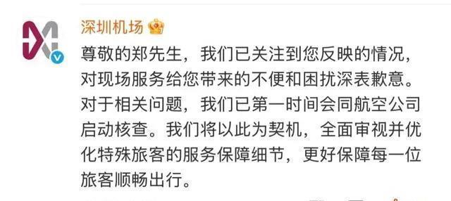 迅速回应:机场致歉启动全面核查事件曝光后迅速引发舆论关注。当天傍晚,深圳机场官方微博就在郑智化的发文下公开道歉,表示“对现场服务给您带来的不便和困扰深表歉意”,并已第一时间会同航空公司启动核查。机场方面承诺,将以此为契机“全面审视并优化特殊旅客的服务保障细节”。据了解,目前机场正与航空公司对事件保障过程进行全面复盘,详细处理方案待调查结果出炉后进一步研究。